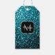 Monogram för blåblanka faux glitter-sparkler presentetikett