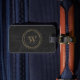 Monogram för Black Faux Leather Guld Circles Bagagebricka