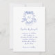 De här snyggt- och vita bröllopsinbjudningarna är en blå, handritad illustration av en bröllop-vapensköld med körsbärare och blommor, och din initialer eller ditt monogram i mitten. Trendiget är ett handskript som ger ett nyktert och romantiskt utseende.