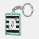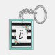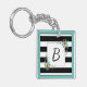 Monogrammad nyckelkedja med svart och vitt rand och känslig blommigt.