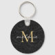 Monogram för elegant Black Guld Blommigt Nyckelring