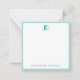 Monogram första modernt, minimalistiskt Personlig med Elegant Ljust Teal Flat Note Card.