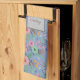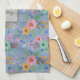 Vintage vår blommor rosa gult mint grönt, färglös, mönster gigly namn monogram på blåa bakgrundshanddukar för kökshanddukar. Det är en vacker och söt sommarblomma från hand plockade som skriver ut en unik gåva till henne som färgade kärlek vår blommor. Du kan ändra texten och färg med Zazzles verktyg för anpassning.