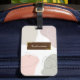 Trendig Abstrakt Shape Sketched Löv Heart Namn Monogram. Bara höger för dig att resa världen med trendigets bagagemärke. Gör det unikt för dig eller för någon speciell. Anpassa med ditt namn på framsidan och baksidan, adress/stad/land/mobilt nummer/e-post på baksidan.