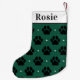 Monogram för grönt Pet Namn Paw-utskrift Liten Julstrumpa