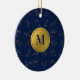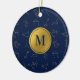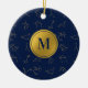 Monogram för guld & marinblå zodiakkonstellationer julgransprydnad keramik
