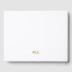 Ett modernt mönster som visar ett handskriftsmonogram för guld-avslappnad och text på vitt.