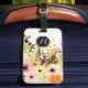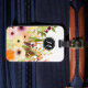 En blommigt bagagetagg som visar pulserande vattenfärgblommor i en palett med varma orangar, djupa och gyllene . Monogrammet tillför en distinktiv beröring som ser till att ditt bagage hamnar i folkmassan.