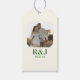 Skapa bröllop-presentförmånstaggar med dina monogram och önskat foto! Grönt med en mycket lätt skugga av gult. Baksidan är solid grönt. Lägg till ett foto som ska visas. Enkel och modern vädjan. Anpassa texten med ett par monogram och bröllop-datum. En del av den romska Träd Design-samlingen. Använda mallen för att skapa dina egna märkre för fotomonogram.