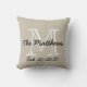 Personligens svartvitt med monogrammade kuddar med familjedatum namn och bröllop i en typografisk överläggningsdesign på ditt efternamn initialt och en tryckt beige linefotoeffektbakgrund. Linen Leta Anpassningsbar Family Monogram Pillow. Elke Clarke© for MonogramGallery at Zazzle. Gör en underbarare gåva till nygifta med ett rosenskt bröllop-tema. Underbar för ditt sovrum, din favoritstol, som roligtens dekoration i ditt familjerum eller ett formellt dekorativt tillägg till ditt vardagsrum.