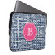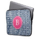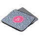 Shock rosa Monogram Laptop sleeve i vid marinblå grekiska Nyckel-Mönster. Anpassade laptop sleeve med marin blå och vit grek nyckel mönster. Anpassa genom att lägga till ditt eget monogram.