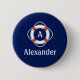 En nautisk tematisk design med en livräddningsbild med ett anpassade monogram och namn efter eget val på en marin blå bakgrund.