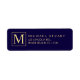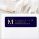 Monogram för marinblått och Guld Elegant Returadress Etikett