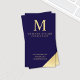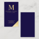 Elegant i marinblått och guld med ett monogram och information i guld professionell med stil med guld grund i gräns i hörnet. Perfekt för makeup artist, designer, stylist, konsult, verkstad och många andra yrken. Observera att den guld-folie som visas på produkten är tryckt och inte en guld-folie.