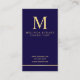 Elegantens utformning i marinblått och guld med ett monogram och information i guld professionell med stil med guld vid grund.