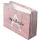 Chic och glam, rosa ros guld, gnistor i metallisk presentväska, med ett stort, vitt monogram initialt och ditt eget namn i ett elegant grått-skript. Anpassa den här trendigets presentväska med ditt namn eller ditt monogram som första påslag. Du kan ändra texten färg och teckensnittet stil och storlekt med hjälp av anpassningsalternativet.