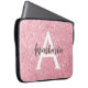 Chic och glam, rosa ros guld, använder en sleeve för metallisk dator med stor, vit monogramsstart och ditt eget namn i ett grått-skript i elegant. Anpassa trendigets sleeve med ditt namn eller monogram först. Du kan ändra texten färg och teckensnittet stil och storlekt med hjälp av anpassningsalternativet.