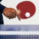 Monogram för minsta röda läder Struktur Guld Pingisracket