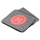Preppy, moderna, kolgrått och vitsparremönster med korall cirklar märkren, och den initiala elegantmonogramen kan du skräddarsy. GraphicsByMimi©