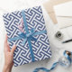 Monogram för mönster för chic blåttgreknyckel presentpapper