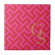 Monogram för mönster för modern rosa greknyckel kakelplatta