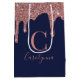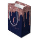 Chic Navy Blue och Ro Guld Glitter Gnistra Monogram Gift Bag med ditt monogram och namn på våra trendig ro-guld/ rosa-glitter-droppar. Designad av Cedar och String. Om du vill anpassa dig ytterligare klickar du på länken "anpassa ytterligare" och användor designen verktyg för att ändra designen. Kontakta oss på cedarandstring@gmail.com om du behöver hjälp eller matchande artiklar