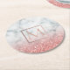 Monogram för ro guld på vit marmorsten underlägg papper rund
