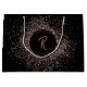 Ett vackert faux rosa guld glitter som mousserar ram med ro rosa guld monogram och svart bakgrund. Den här gnistran för elegant-Julklapp som kombinerar svarta toner och ro rosa guld skapar ett sofistikerat biet av abstrakt konst. Perfekt födelsedagspresent, daghemsdekoration, barnrumskonst, hemdekaler, eller gåva till andra speciella tillfällen.