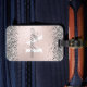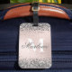 Elegant Silver och Faux Rosa Foil Monogram resetagg med anpassade calligraphy script namn och fold monogram template.