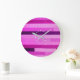 Här är en engångsstrimlad trippad väv med gigantisk rosa och lila rand till din klocka. Det har en vacker utgivning. Vi införde ett monogram för anpassadet mitt i klockan på ett mycket originellt sätt. Den är skriven i vitt i ett dekorativt prickat typsnitt av trendiget. Vi har lagt till en subtil 3D-effekt till typsnittet för att göra det mer läsbart. Glöm inte att byta ut den ursprungliga mot din egen eller känn dig fri att ta bort den.