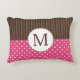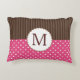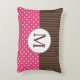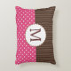 Monogram för rosa- och bruntpolka dotsrandar prydnadskudde