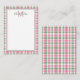 De här små, monogrammade anteckningskorten har ett klassiskt plaid mönster i rosa, grönt och vitt. Anpassa matchande monogram för rosa och grönt med ditt val av namn och initial.