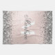 Elegant Silver Glitter och Faux Rosa Foil Monogram Kitchen Towel med anpassade calligraphy script namn och fold monogram template. Ett sött nytt sovrum, en första lägenhet eller en gåva till kvinnor som personlig köksgåvor.