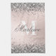 Monogram för Rosa och Silver Glitter Kökshandduk