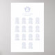 ReEmergency Blue Ornamental Vapensköld monogram, 14 bord bröllop sätesdiagram. Vintagen inspirerade barockisk vapensköld i ReEmergency Blue. Funktioner, elegant och klassblå typografi stil-blandning av skript och fet text.