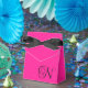 Monogram för shock rosa- och svartfärgsskript presentaskar