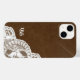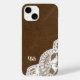 Den här utskriften ser ut som brunt läder och snöre för ett trendig, elegant och unikt mönster. Snöre-kanterna går upp på högerna grund, med initialer i ett snabbt skript till lämnat. Tryckningen simulerar läderutseendet och snöre, men det har inget läder, läder struktur eller snöre. Skriv in initialerna i avsnittet Anpassa.