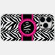 © 2014 Socialite Design. Sassy och chic zebra mönstrad med snöre och mobiltelefonfodral med monogramsformat bredband. Enkel att anpassa - byt bara ut den befintliga texten mot din egen.