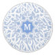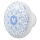 Denna nätt strandhus/hem- enhetsknopp för sommar inspireras av den havkorallrevar och sjöstjärnan. Korallrevmönster göras i en stencileralook i vit på en rökig grått-blått bakgrund. I centrera bildar sjöstjärna åtta en cirkla runt om ditt beställnings- monogrambrev.