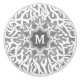 Denna nätt strandhus/hem- enhetsknopp för sommar inspireras av den havkorallrevar och sjöstjärnan. Korallrevmönster göras i en stencileralook i vit och grått. I centrera bildar sjöstjärna åtta en cirkla runt om ditt beställnings- monogrambrev.