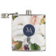 Elegantens sofistikerade, vintage-inspirerade olja på en kolv av botaniskt blommigt. Runt monogramcenter för samordning av marinblått.