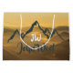 Monogram över skygglappar i guld som är anpassningsbara. Vector ritade berg i grått blue färg med ett personlighetsdugligt monogram och ditt namn. I bakgrunden en häpnadsväckande soluppgång i guld med dimma i dalen och sol. Underbar gåva från någon som kärlek bergar.