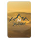 Monogram över skygglappar i guld som är anpassningsbara. Vector ritade berg i grått blue färg med ett personlighetsdugligt monogram och ditt namn. I bakgrunden en häpnadsväckande soluppgång i guld med dimma i dalen och sol. Underbar gåva från någon som kärlek bergar.