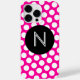 Svart cirkel med anpassade monogram och vit polka punkt mönster.
