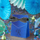 Bakgrunden har en söt faux royal blue metallic foil digital art design. Anpassa det svarta lågtalsteckensnittet för lågtrycksskript om du vill skapa en egen favoritruta för personlig tält stil med ett menyfliksområde. Lägg till ett namn över det enkla brev-monogrammet för att skapa trendigets utformning.