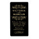 Perfekt för vinodlingar bröllop eller flaska i vin, dessa elegant-vintage har en stil-märkning som har ett personligt bröllp-monogram med brid och brudgumms namn, bröllop datum, typ av vin och tack för ett budskap som kan vara helt personlig. Svart och champagne guld eller tan färg.