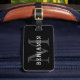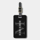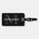 Manar-bagagetaggen med namn i vit färg, första brev i andra namn i grått på djup svart bakgrund. Anpassa med kontaktuppgifter i trendigets versaler.