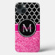 Svartvit och shock rosa engrammad utformning i mitten av anpassadet. Den översta halvan har anpassadet svart och vit marockansk trellis mönster. Grund skapat med ett foto från glitter på grund. Utformningen är ett foto, alltså faux glitter struktur. Skapa din egen personlig monogram fodral. Prova med ett annat teckensnitt eller färg i systemet för att kostym din stil.