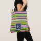 Vår ljusa och färgstarka monogram tote-väska har ett varierat vågrät rand mönster i den klassiska paletten av rosa, lime green och marin blue, med ditt första monogram i motsvarande marinblått.