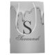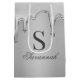 Chic Silver vätskekromater Hett Metall Monogram Gift Bag med trendig faux vätskekromatdroppning på en metallisk bakgrund i silver med anpassningsbar monogram och namn. Kontakta oss på cedarandstring@gmail.com om du behöver hjälp med designen eller matchande produkter.